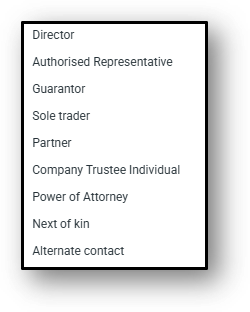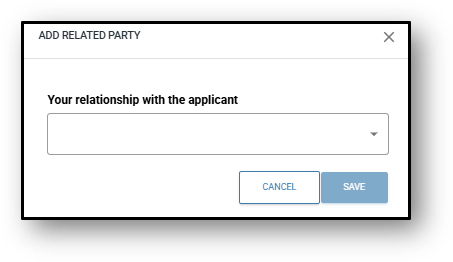 User can ‘+ Add Related Party’ to the company tab by clicking on the plus icon. You will then be asked to choose the related party type from the following list:
