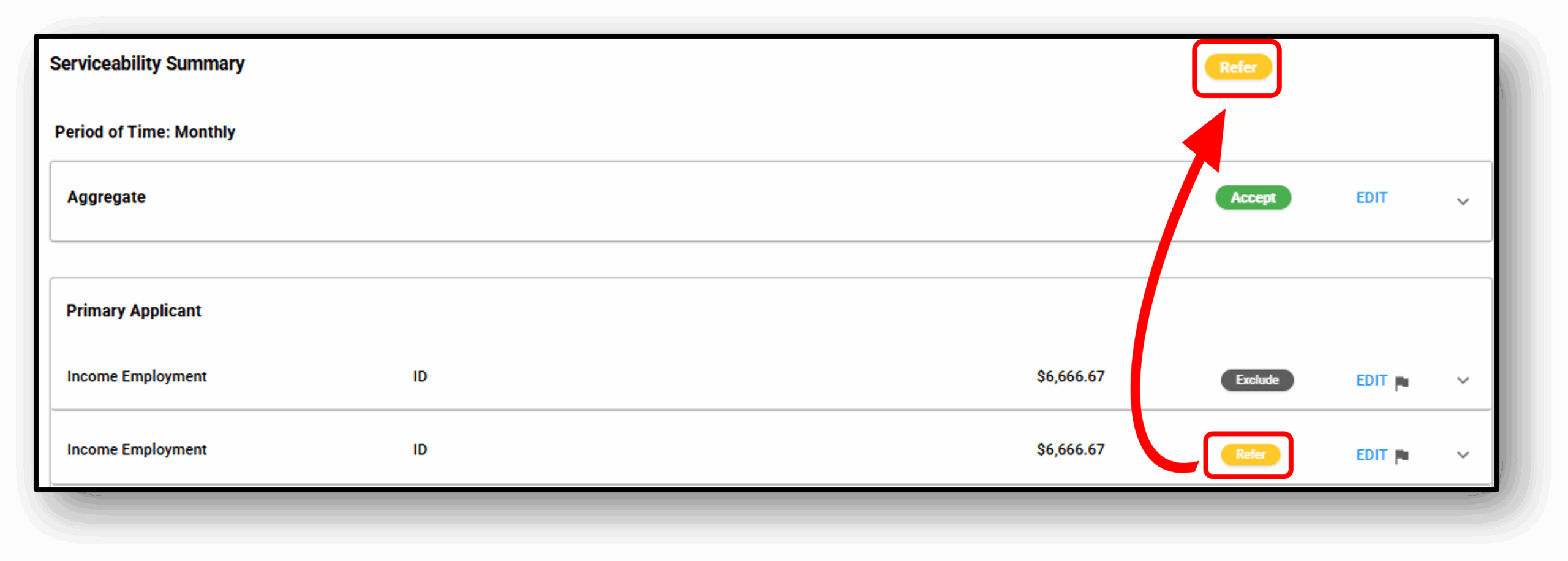 Meaning, if one section is requiring for the application to be ‘referred‘ then the Serviceability Summary will say ‘Refer‘.