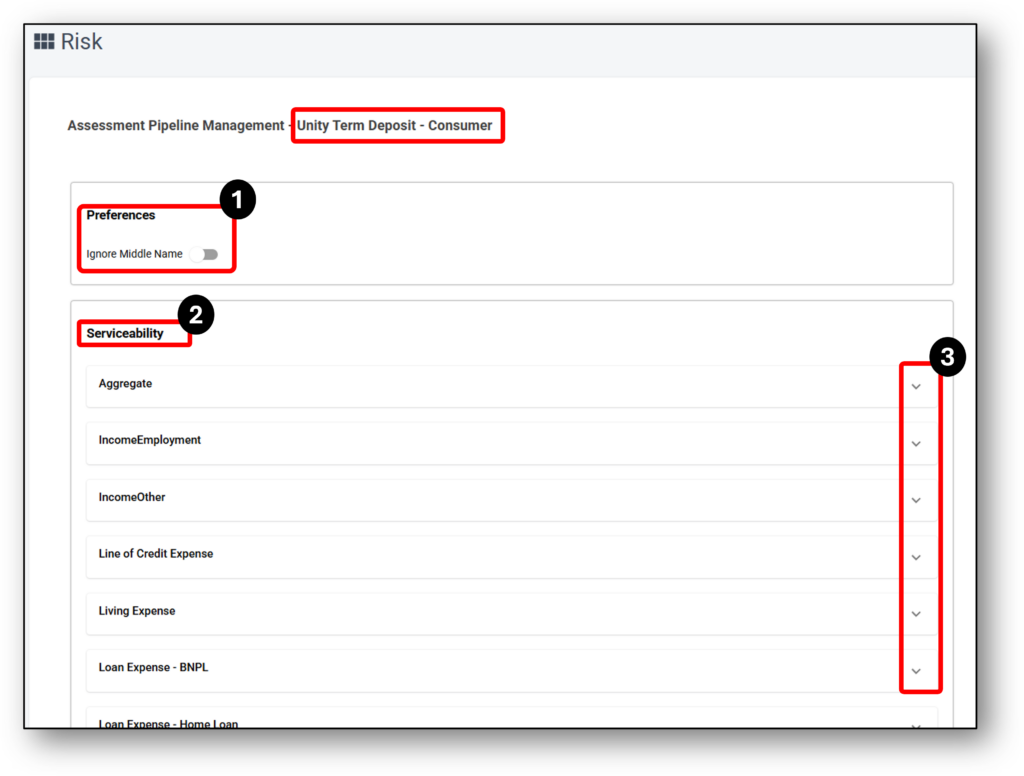 From the above image, Preference is the first of seven categories. Then the Serviceability category has a list of sub-categories each with their own rulesets (indicated by the drop-down arrow on the right hand-side at number 3). Below is a list of the seven categories, their associated sub-categories and their formulas