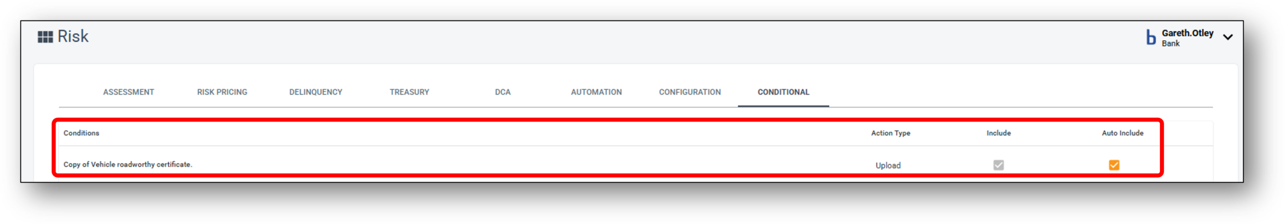 The Conditional tab allows the lender to select all of the Conditional approval conditionals they would like to be available for a loan.