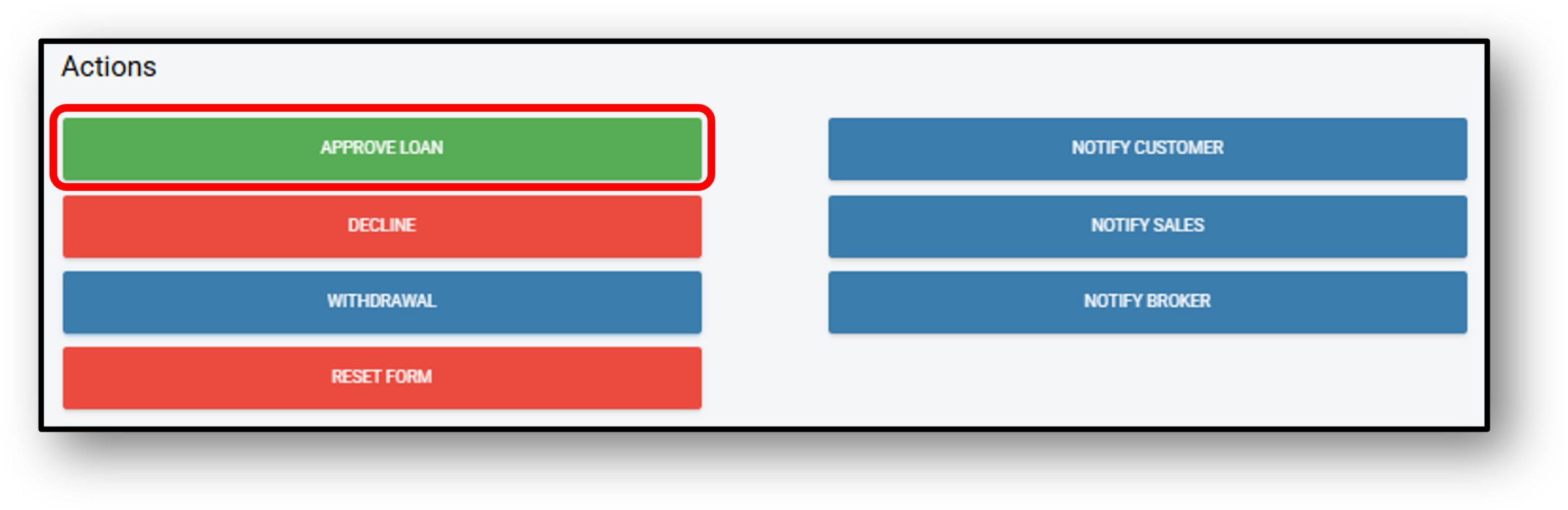 The nominated staff member (Approver) sees an ‘Approve Loan’ button (See Image 7) on the application in their staff portal. They can then review the relevant policies and, if all requirements are met, proceed to approve the loan.