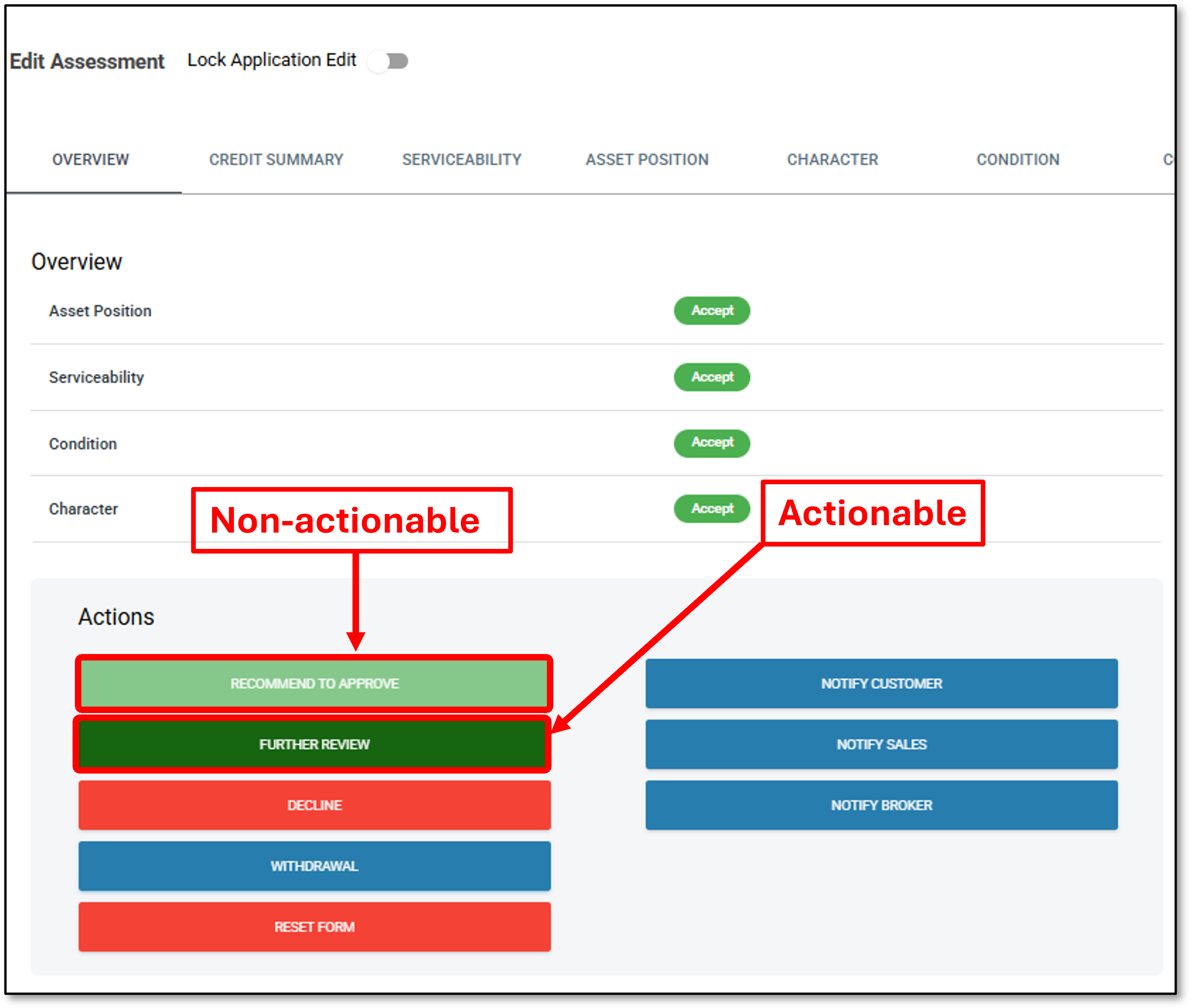 After the staff member has nominated an approver, they will see both; a non-actionable ‘Recommend to Approve’ button, and an actionable ‘Further Review’ button (see Image 6). The option to furher review allows the staff member to select an alternative approver if the first approver is unavailable.
