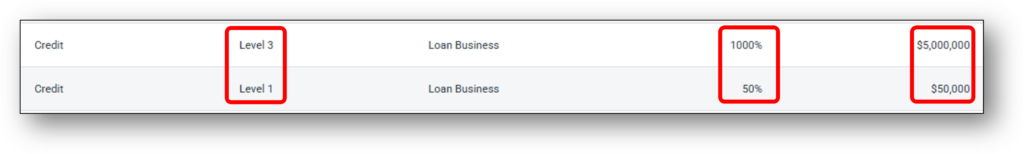 - Within the role set the Level within the role that you want the new rule to apply to. Eg. A Credit Level 1 User
