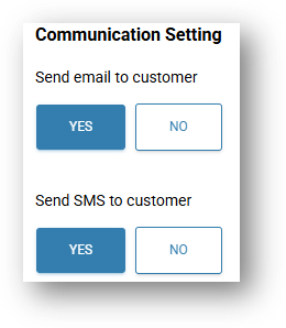 - Send SMS to customer – Yes/No