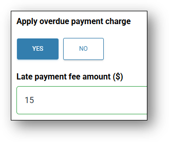 - Late payment fee amount ($) (if previous question is ‘Yes’) – $__