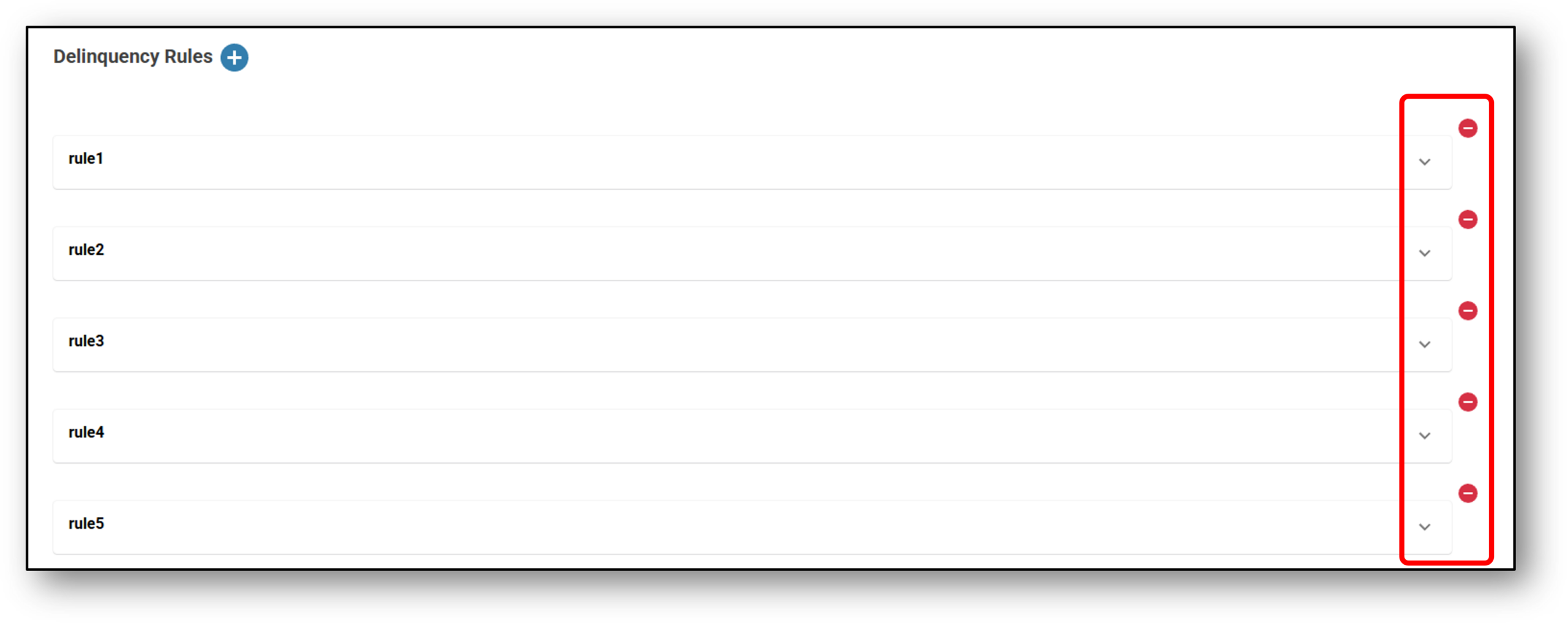 Once the company profile is setup, users can start either editing rules (see image below) by selecting the down arrow (if a template was selected), or create new rules by selecting the ‘Delinquency Rules +’ button (see image below).