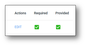- Required – shows whether a question is mandatory. If this field is checked, then the ‘Provided‘ field must be completed, otherwsie it will spawn a blue bubble indicating something is still required. If the required box is unticked, it is optional for this to be provided.