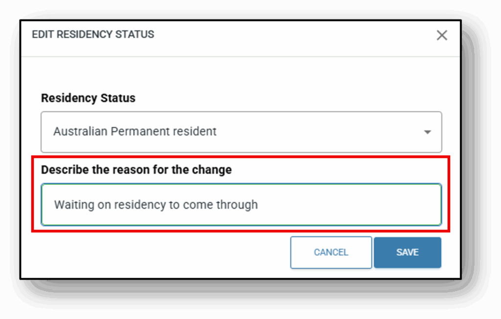 Changes to any section in the application layer will display a pop-up requesting a comment on the reason for the change.