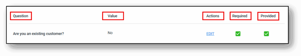- Actions – Allows the user to manually edit and update the answers provided by the applicant.