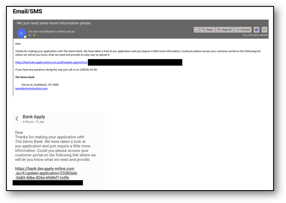 - Customer Document button – which would trigger an email and/or SMS to the customer that a request for documents has been made via the lender.