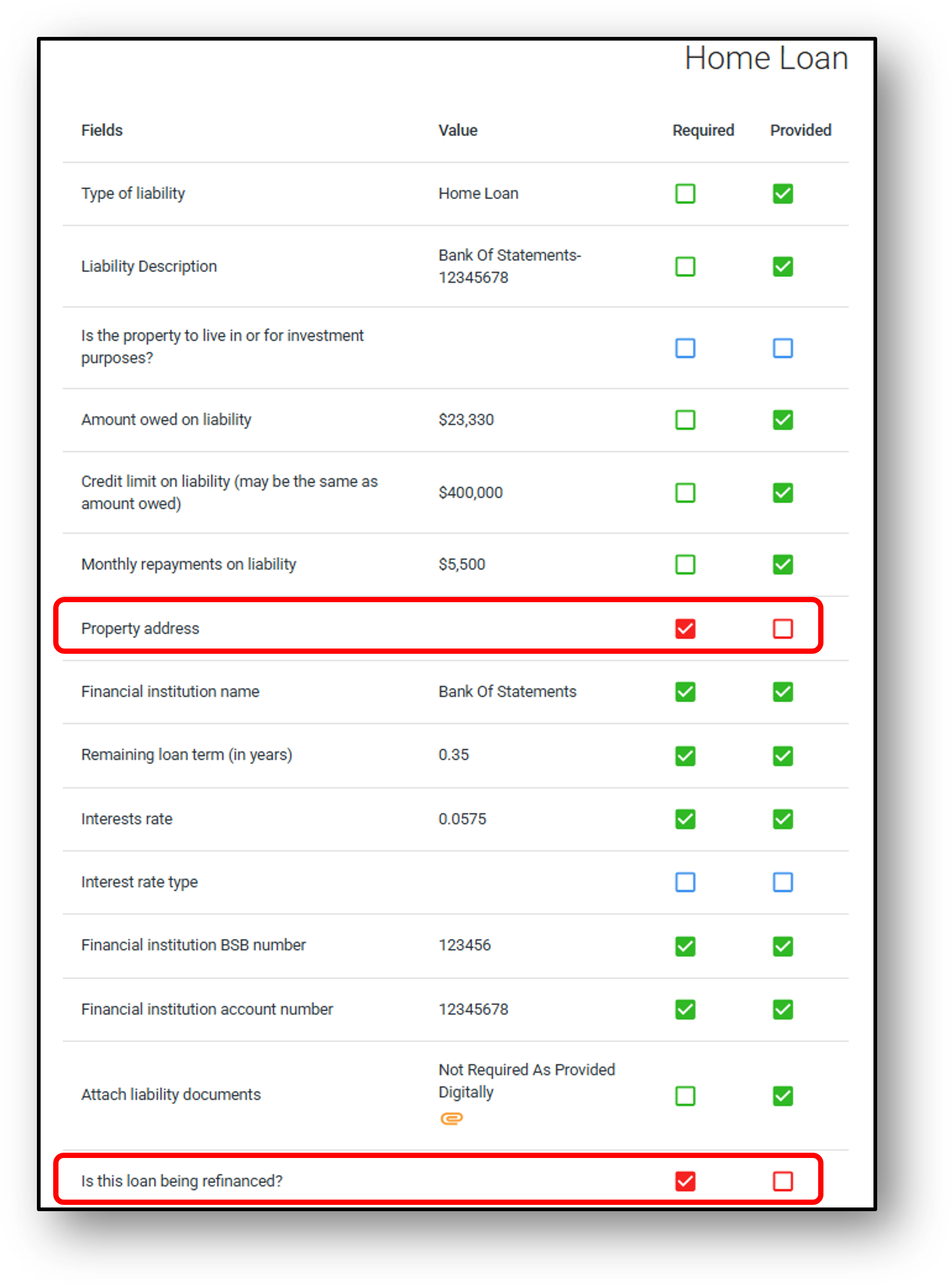 They are then presented with the liabilities section of the application form, scroll down to where the information is required, enter the information and then save the application. You”ll notice as you do the number will either decrease or disappear entirely once all the required information is captured.