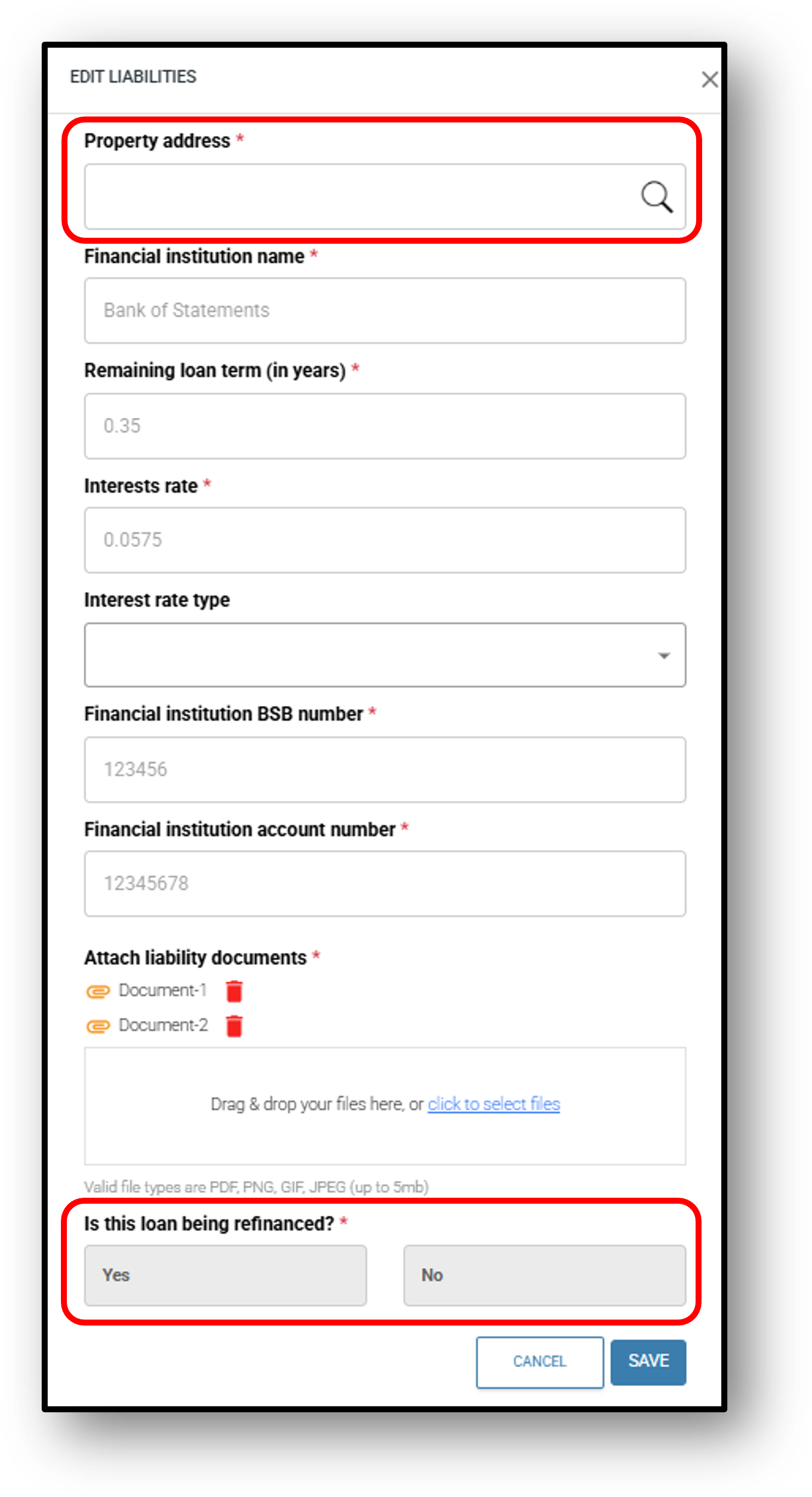 They are then presented with the ‘Edit Liabilities’ section of the application form, scroll down to where the information is required, enter the information and then save the application. You”ll notice as you do the number will either decrease or disappear entirely once all the required information is captured.