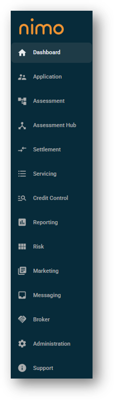 Layer – Each clickable section on Nimo’s left-hand side is considered a layer (E.g. Dashboard Layer, Application Layer etc.). Each user may have differently configured views depending on your role within your organisation. Initially Nimo will be set up out-of-the-box for each user, then, the Superuser will manage on-going access per users when required. The different layers available are featured below: